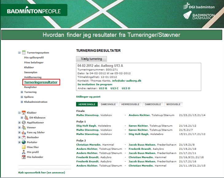 Find resultater fra stævner og turneringer