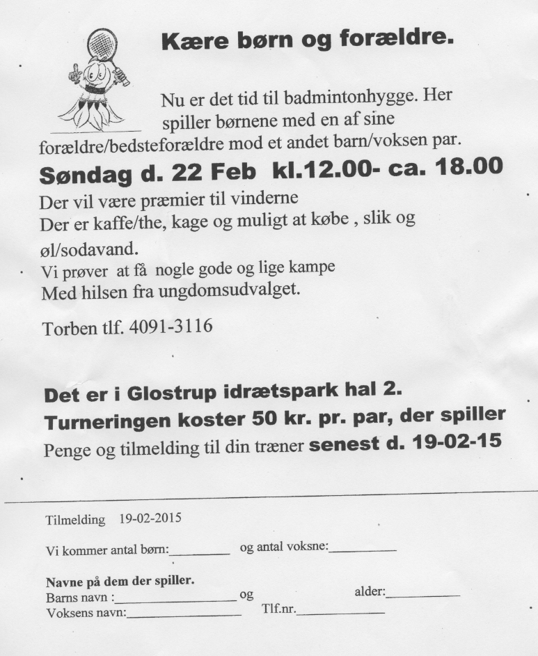Fastelavnsturnering for børn og forældre afholdes søndag 22. februar 2015 kl. 12:00 - ca. 18:00 i hal 2.