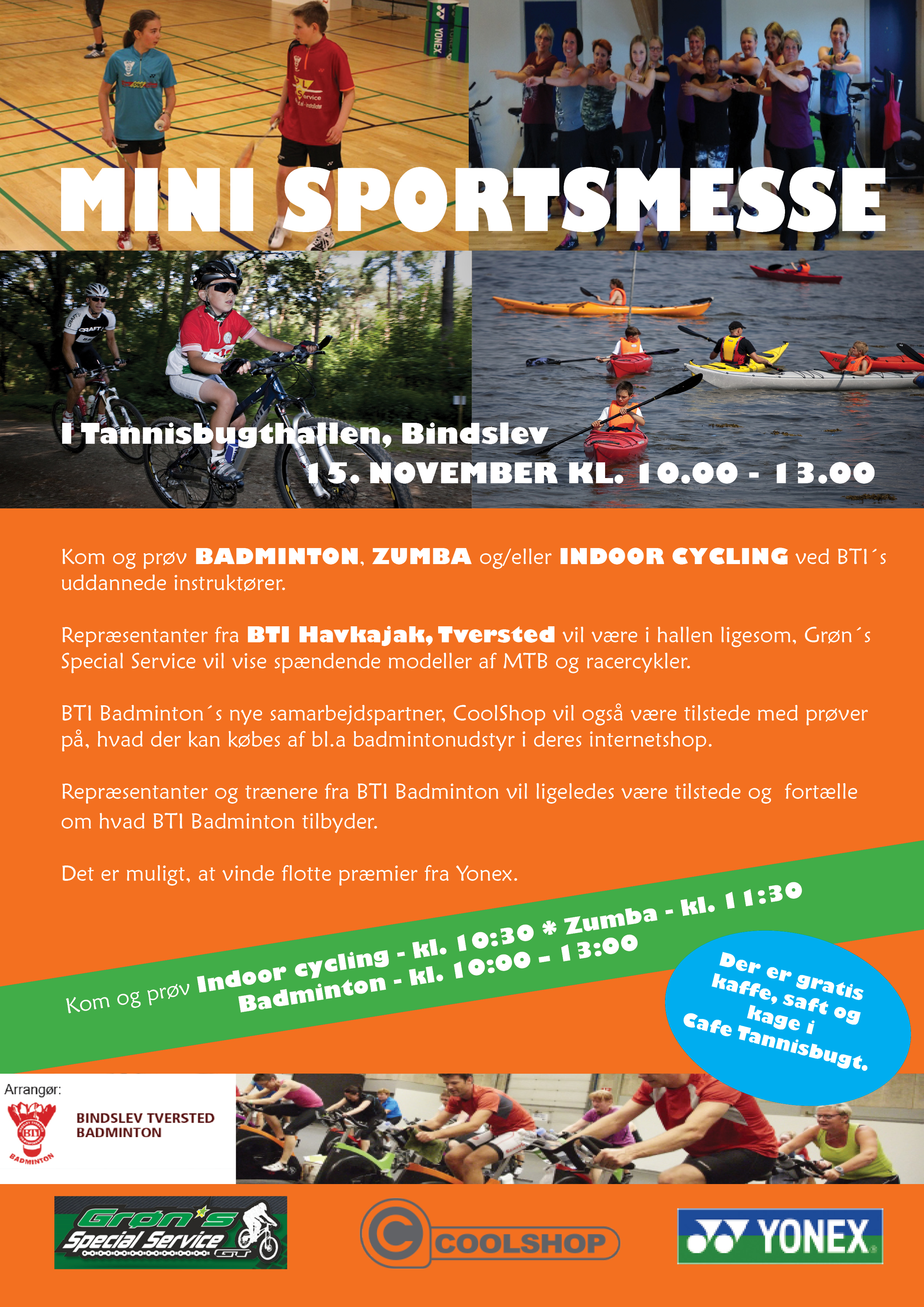 Kom og prøv badminton, Zumba og/eller Indoor Cycling ved BTI´s